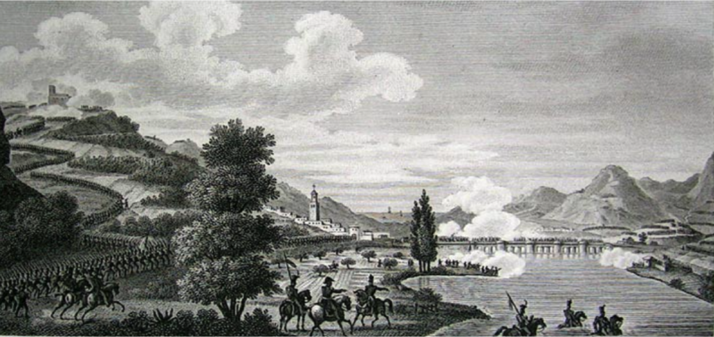 Combate de Molins de Rey (9 de julio de 1823). La brigada francesa de La Roche-Aymon derrota a las fuerzas de Milans. Autor Abel Hugo.