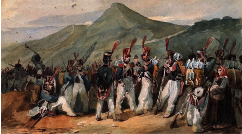 Los Cien Mil Hijos de San Luis en 1823 haciendo un alto.